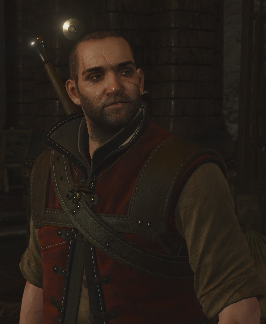 Pomaga Geraltowi w walce z Savollą i jego bandytami, lub razem z nim rusza zabić Przerazę. Ginie z rąk Magistra podczas ataku Salamandry na Kaer Morhen.